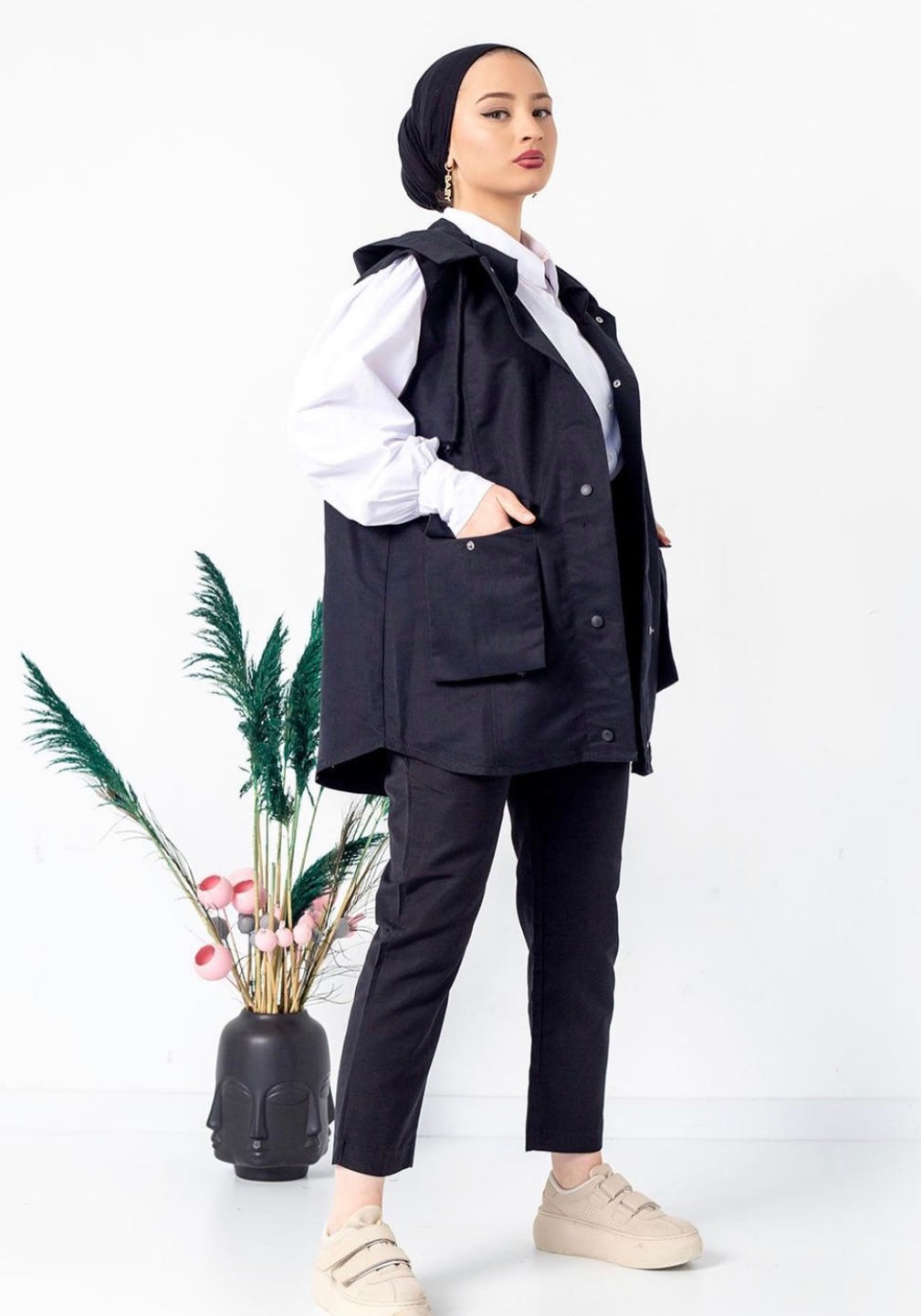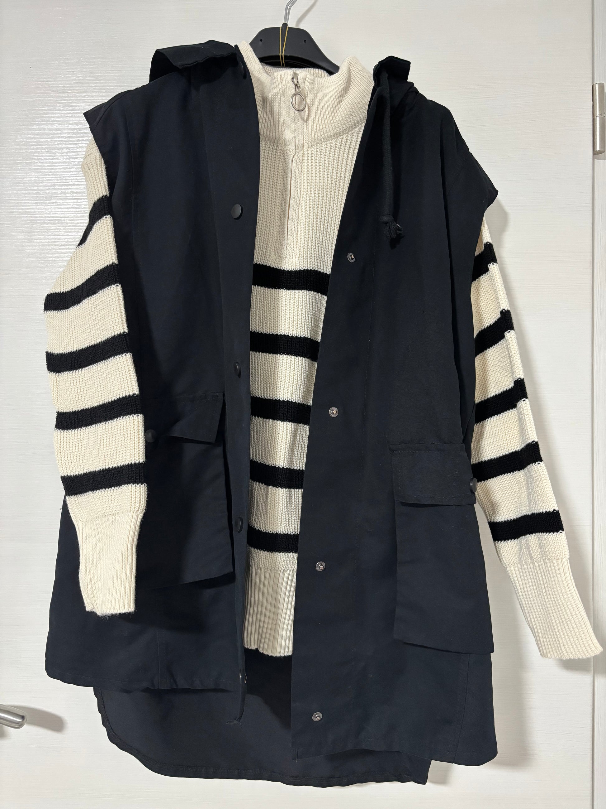 Das Set besteht aus dem Gestreiften pulli mit Reißverschluss und der kaputten Weste.